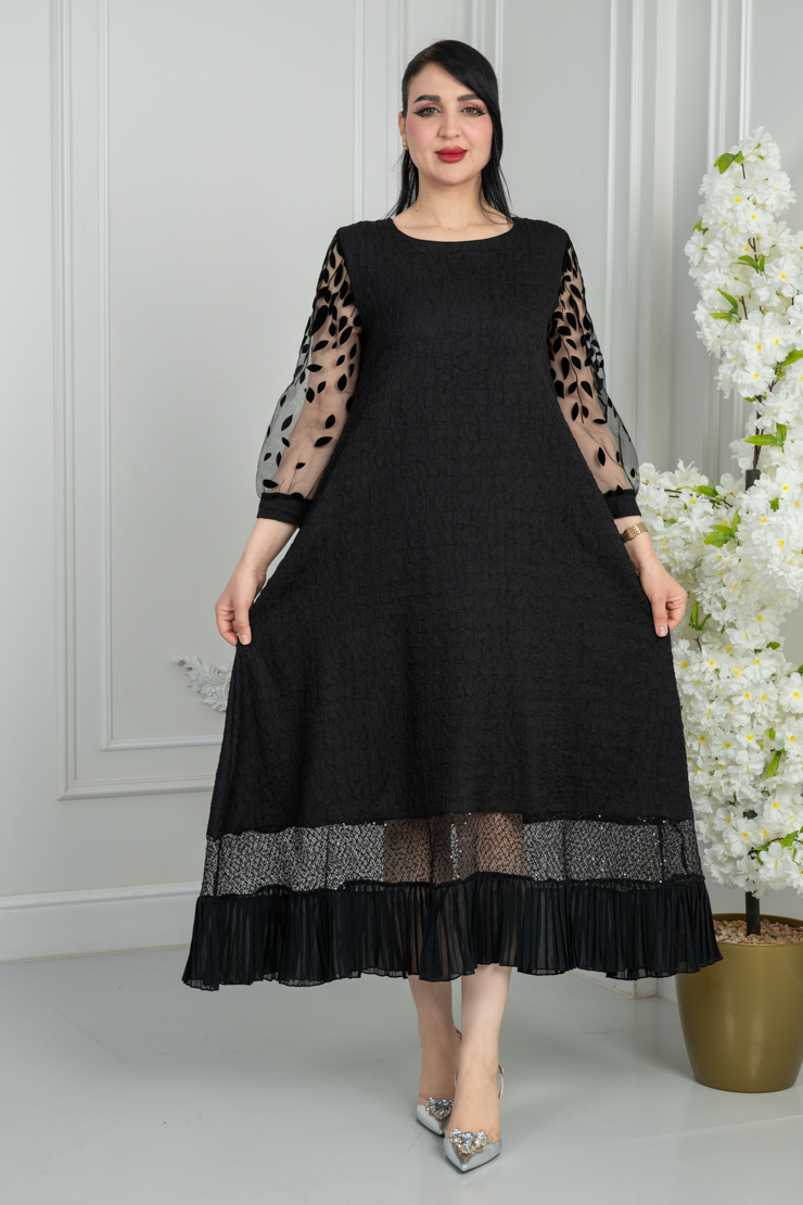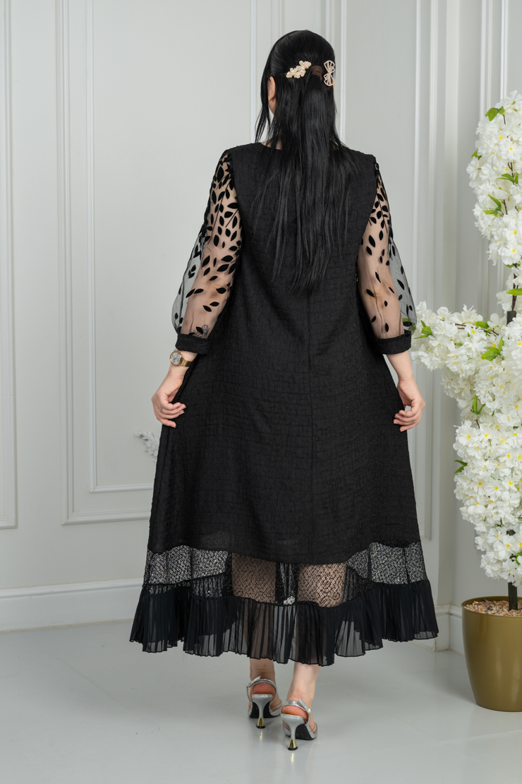جلابية سوداء بتفاصيل شفافة لإطلالة أنيقة وعصرية.