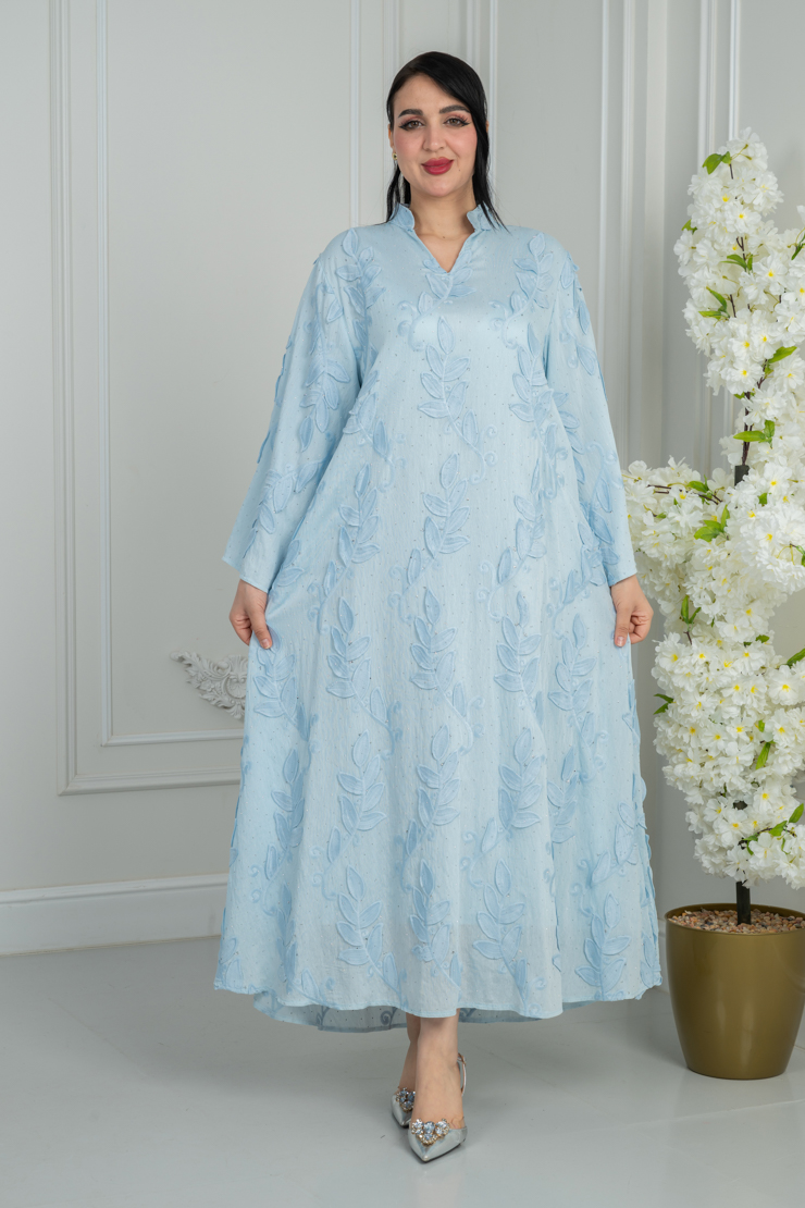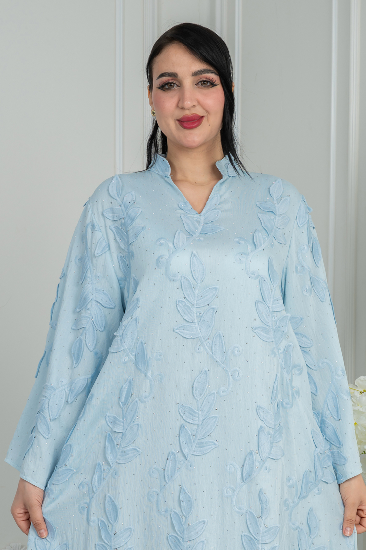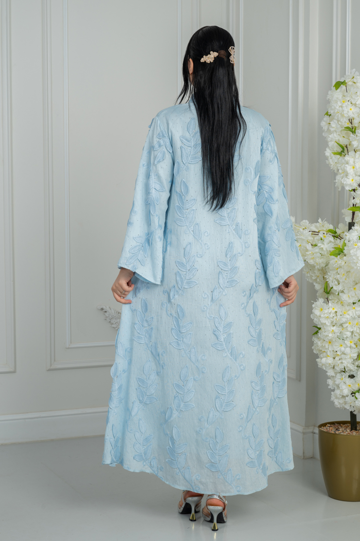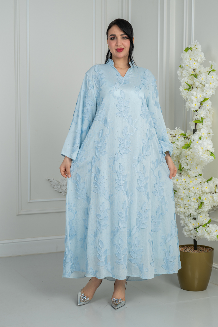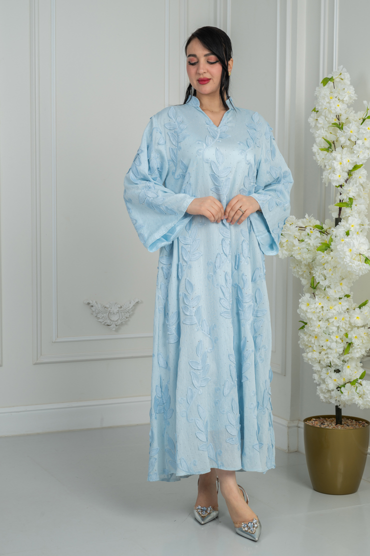 جلابية بلون أزرق سماوي بتصميم سادة لإطلالة هادئة ومريحة.
