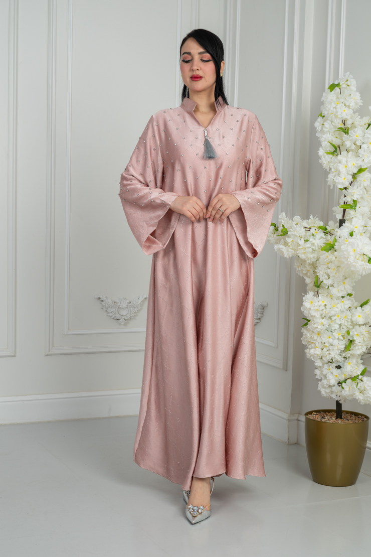 جلابية بلون وردي فاتح بتصميم سادة لإطلالة ناعمة ومريحة.
