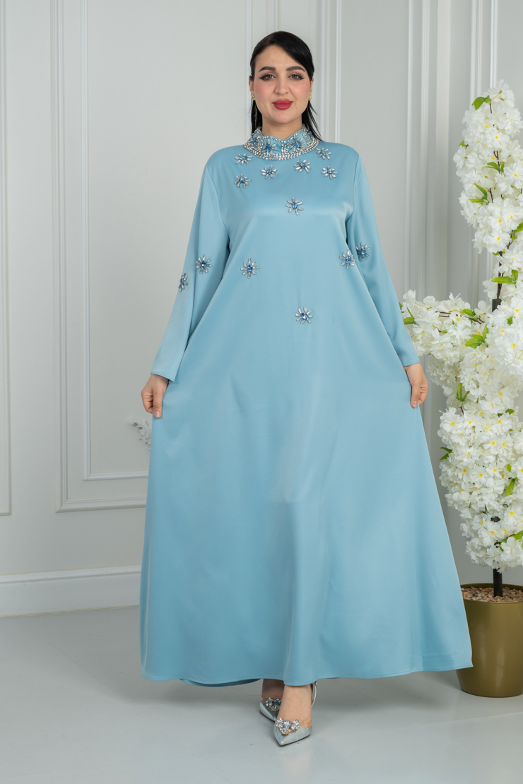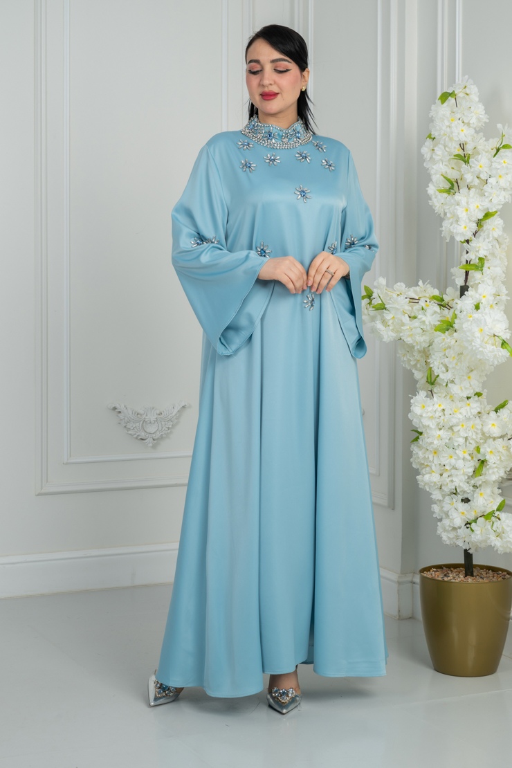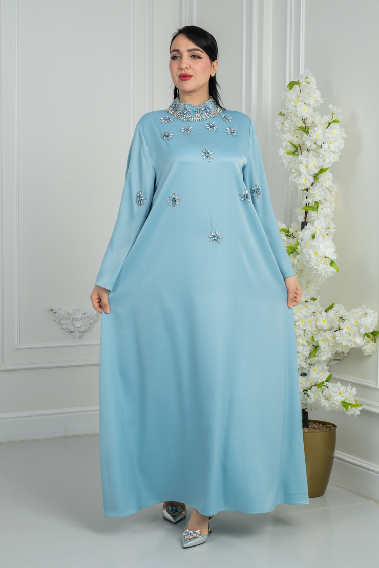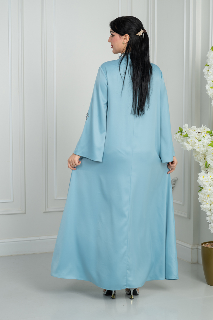 جلابية بلون أزرق سماوي مع تطريز ناعم لإطلالة راقية وهادئة.