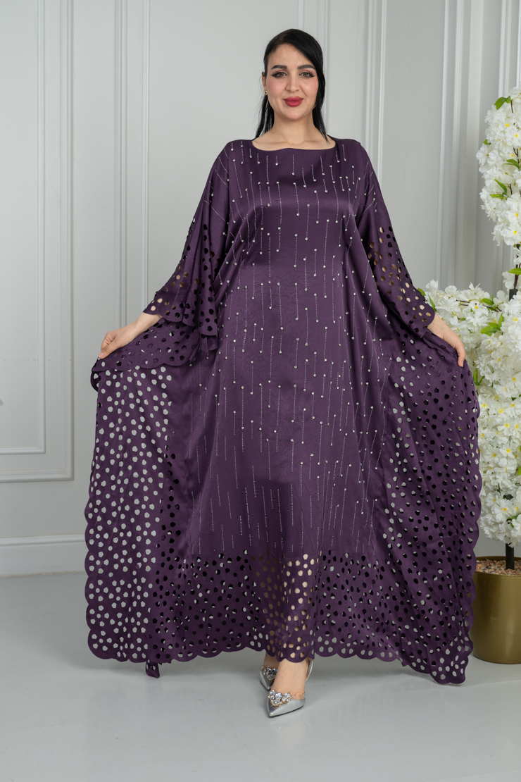 جلابية بلون بنفسجي داكن مع نقشة ناعمة لإطلالة فخمة وهادئة.