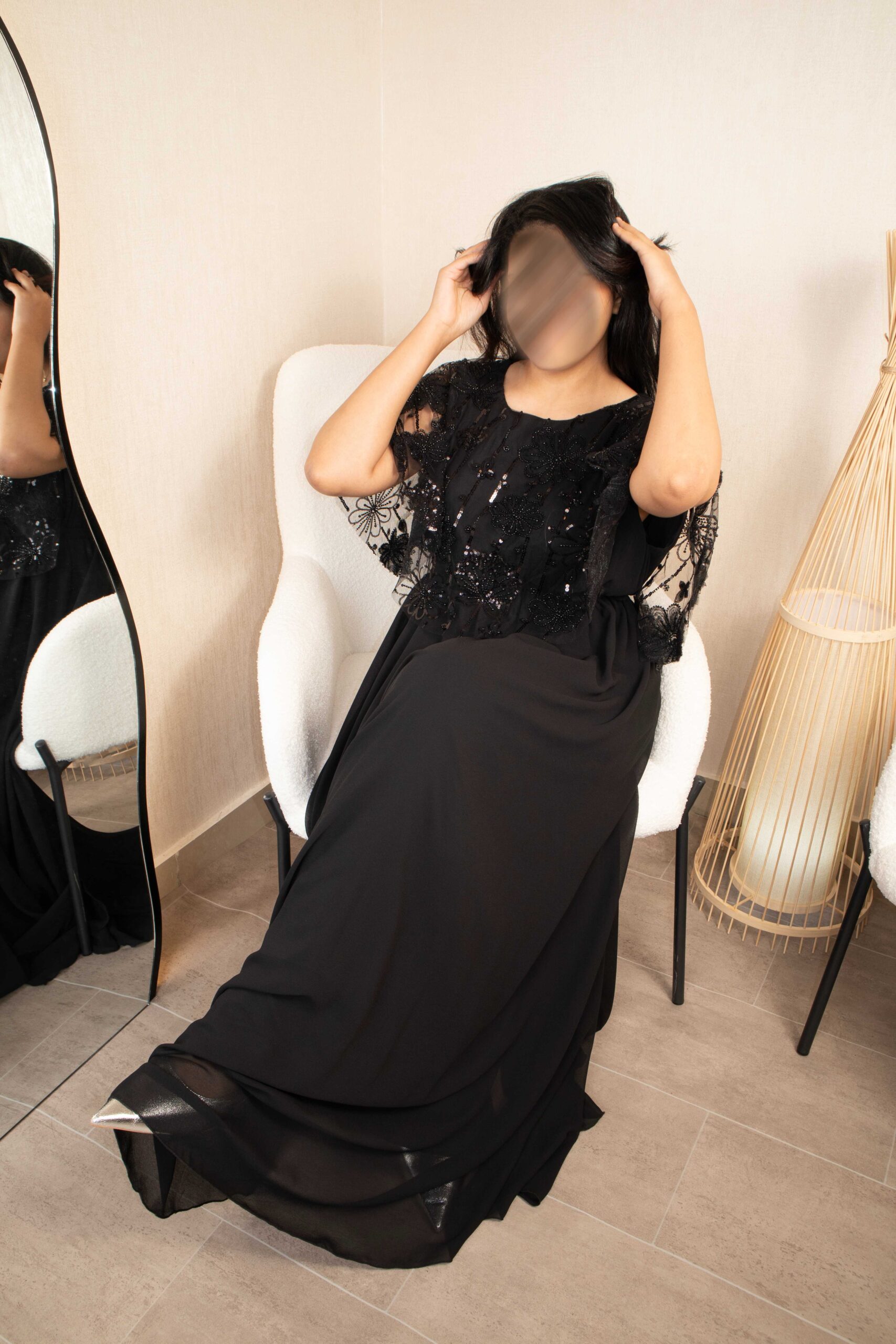 مراجعات العملاء على فستان أسود طويل (شيفون) – ترتر وخرز