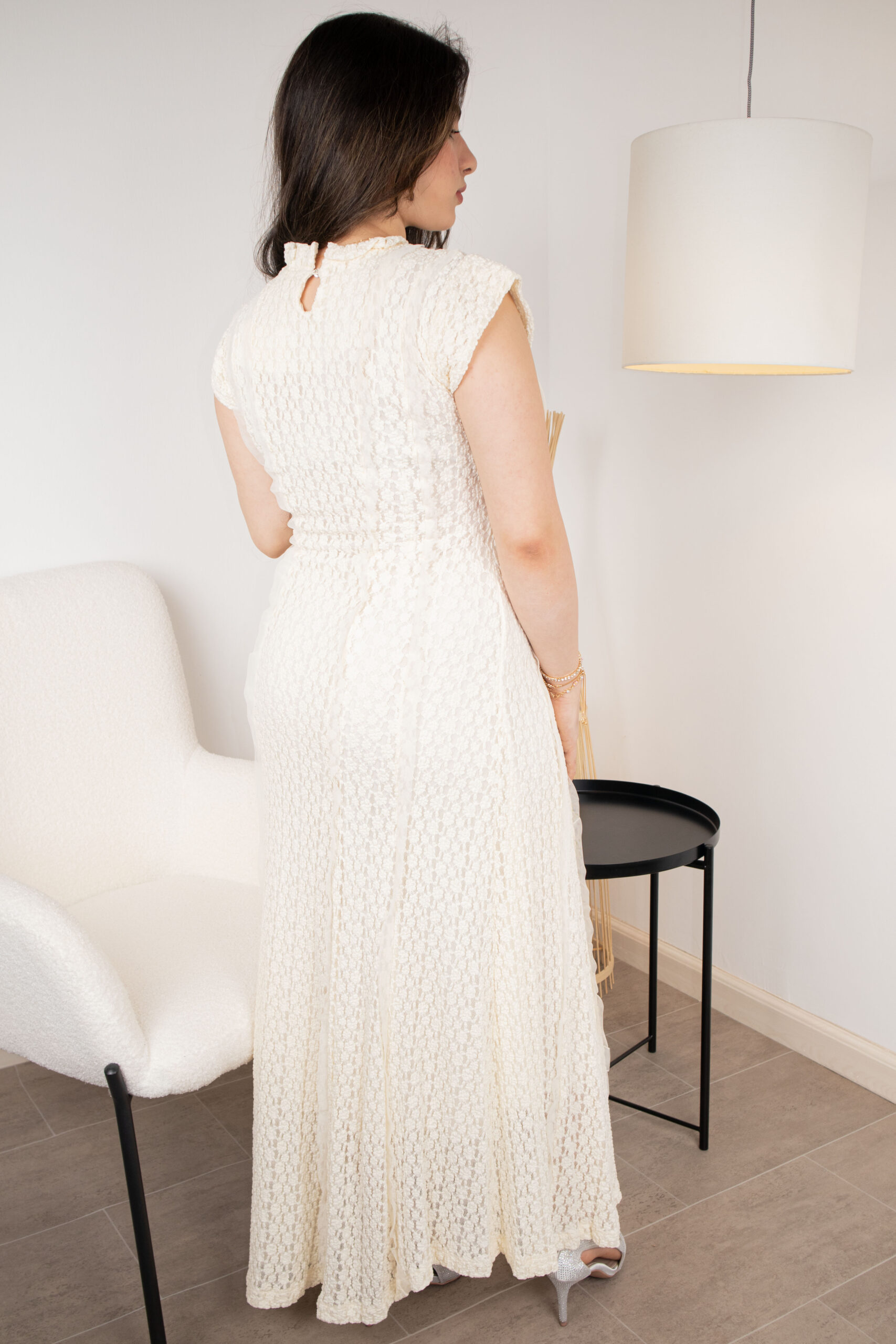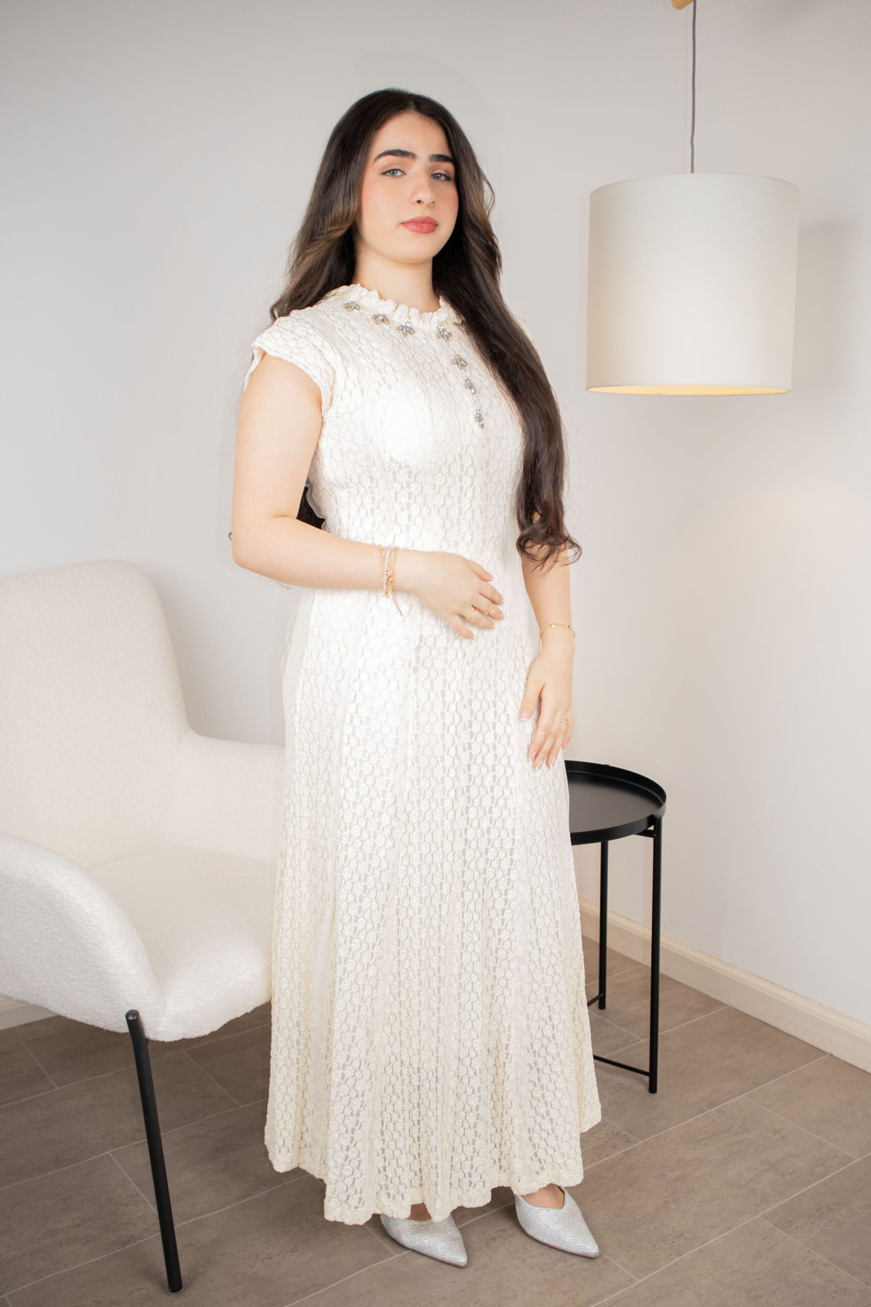 تألقي بإطلالة مفعمة بالأنوثة والرقي مع هذا الفستان المصمم من الدانتيل الناعم عالي الجودة. يتميز الفستان بتفاصيل دقيقة تضفي لمسة من الفخامة العصرية على مظهرك.