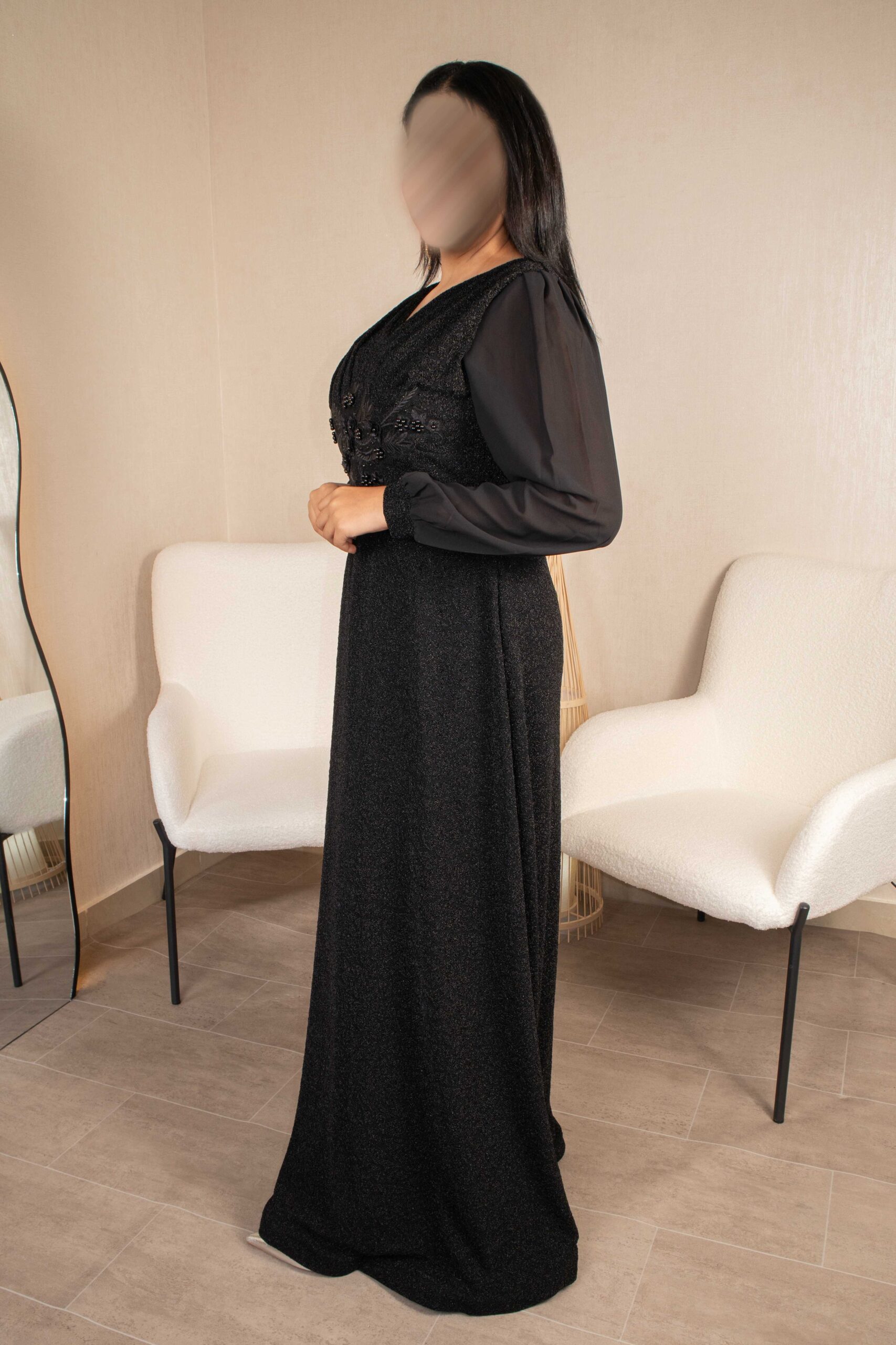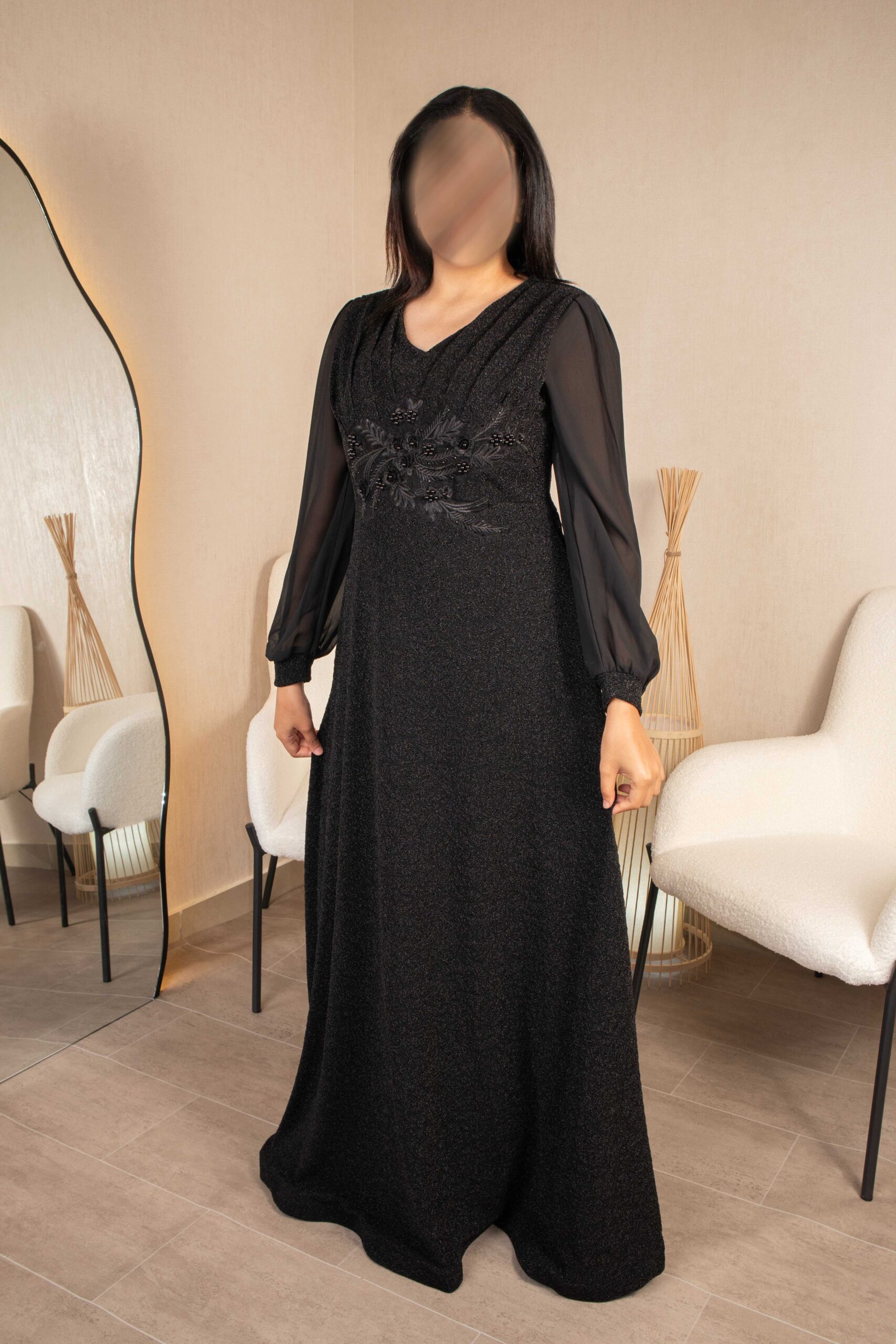 مراجعات العملاء على فستان سهرة أسود طويل (استرتش) – تطريز وأكمام شفافة