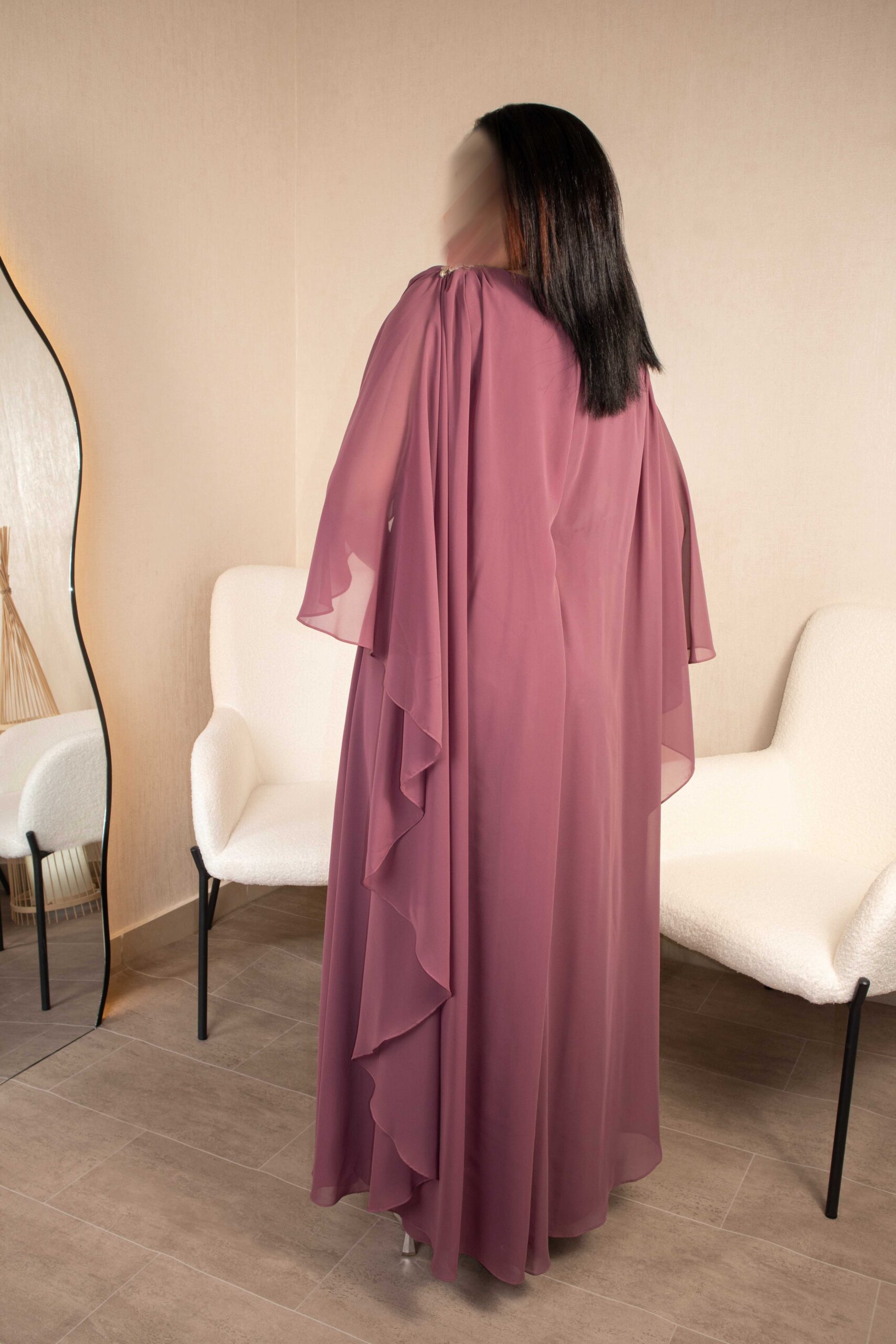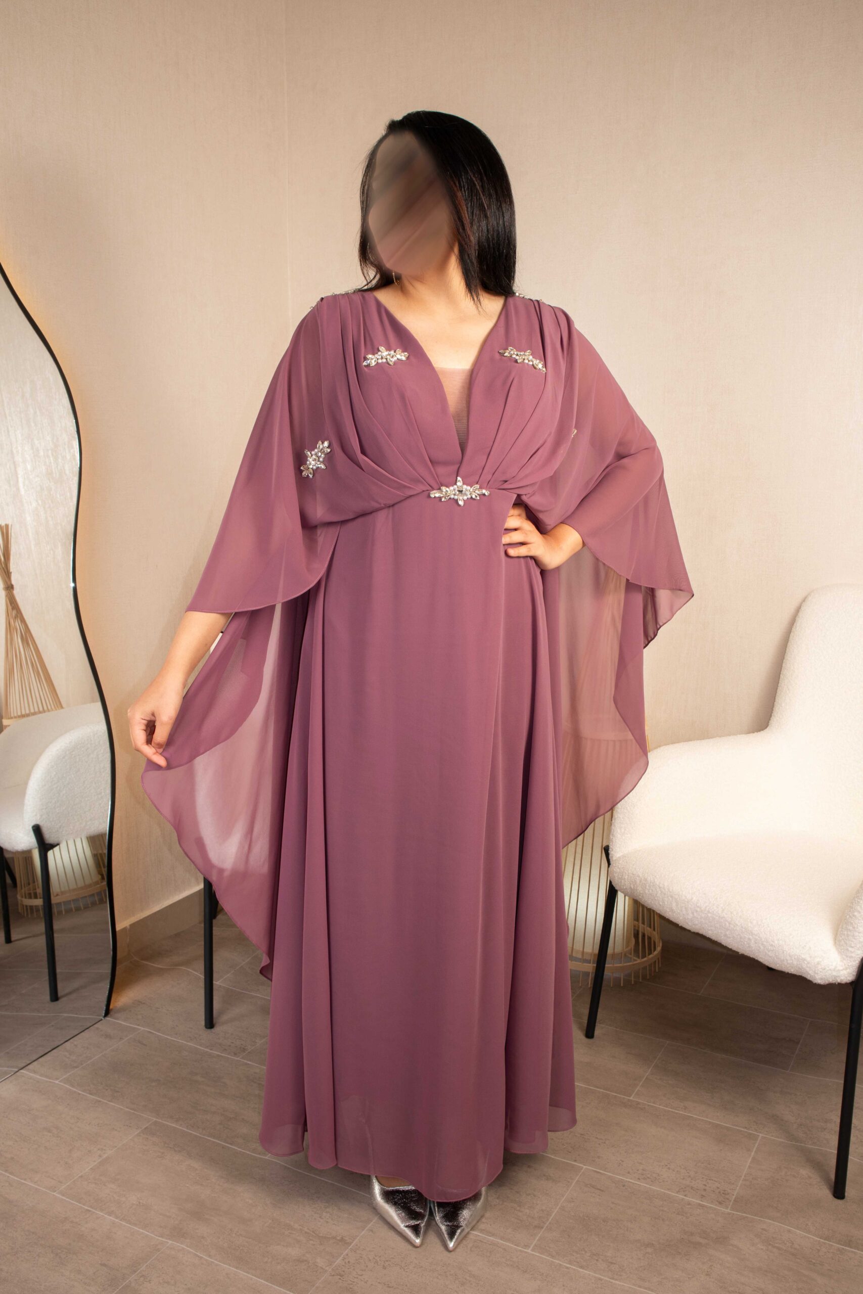فستان شيفون أنيق من مس لورين بتصميم ماكسي كلاسيكي، يأتي بلون موف فاتح مائل للوردي يمنحك إطلالة ناعمة وراقية. قصّته الطويلة وانسيابية القماش تجعله خيارًا مثاليًا للسهرات والمناسبات بإطلالة أنثوية هادئة.