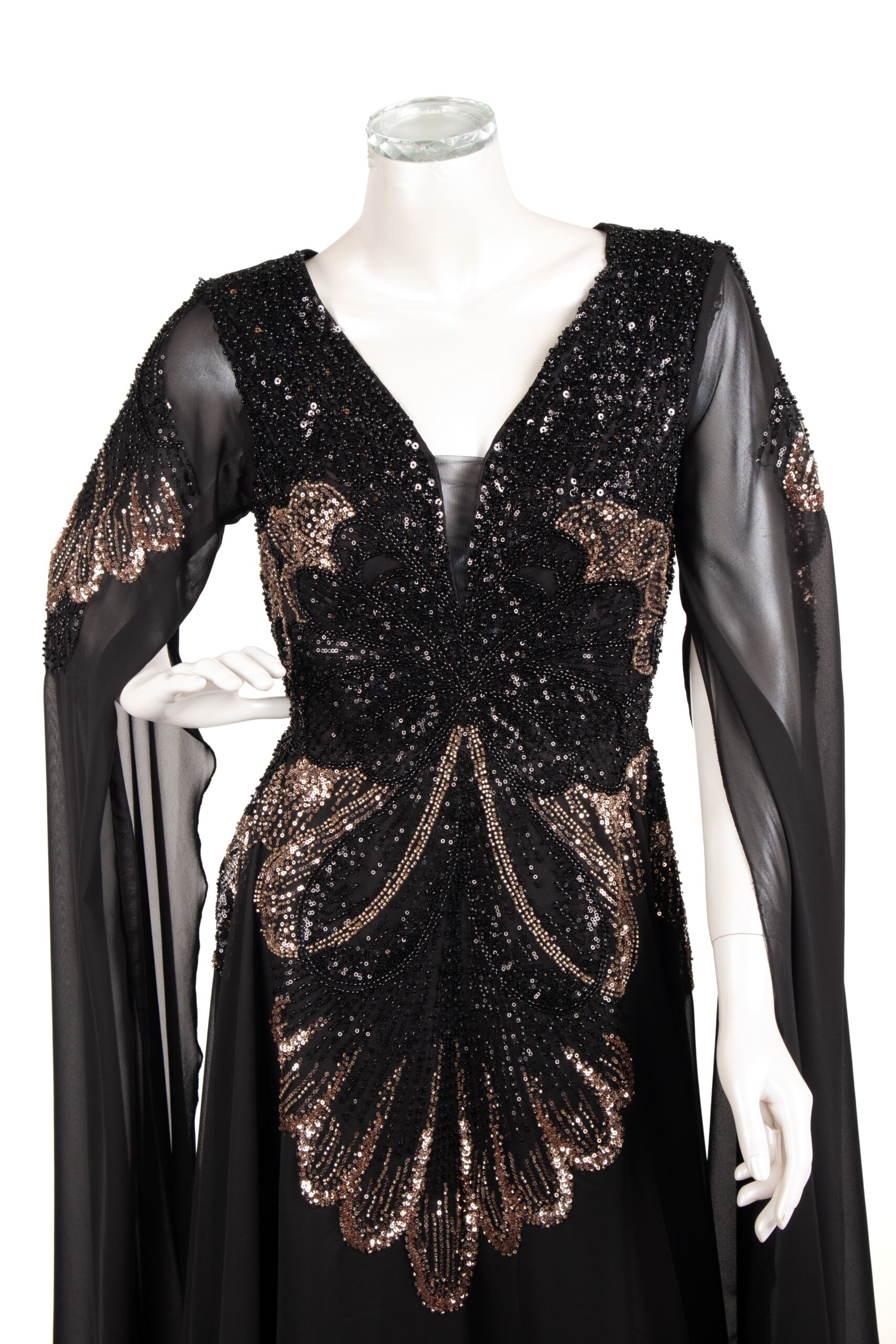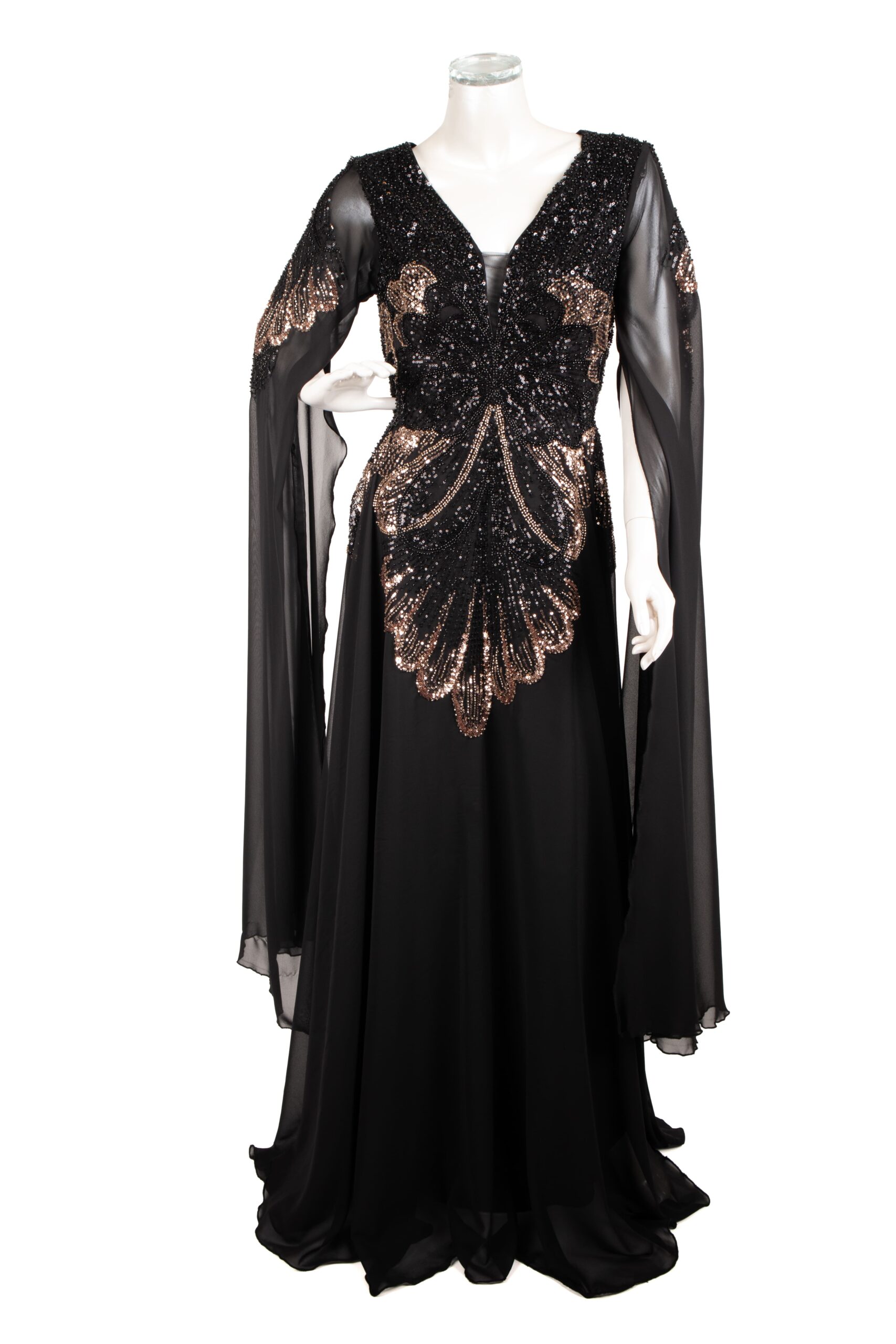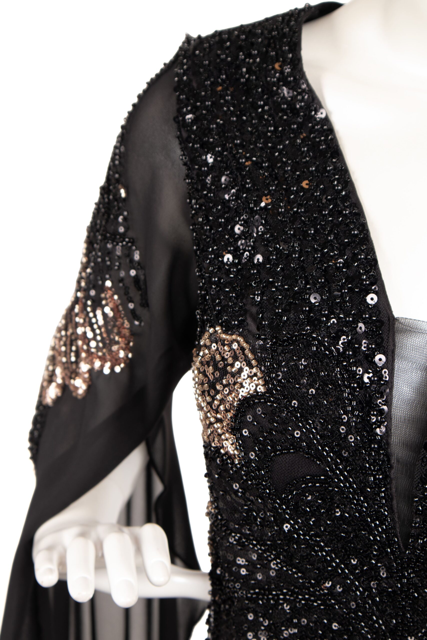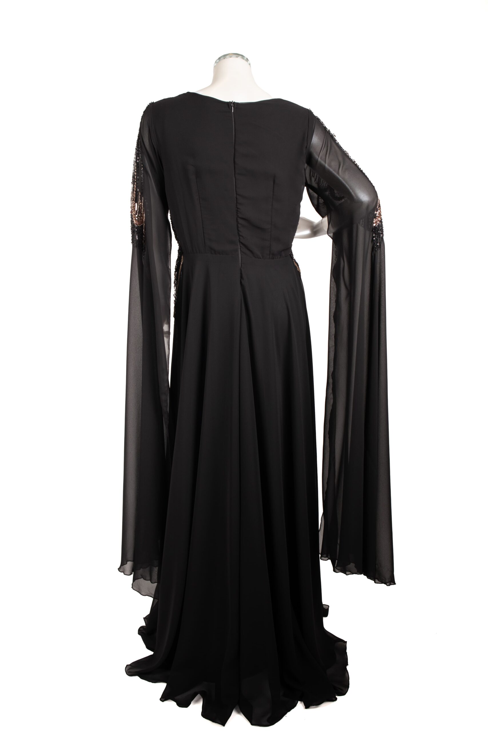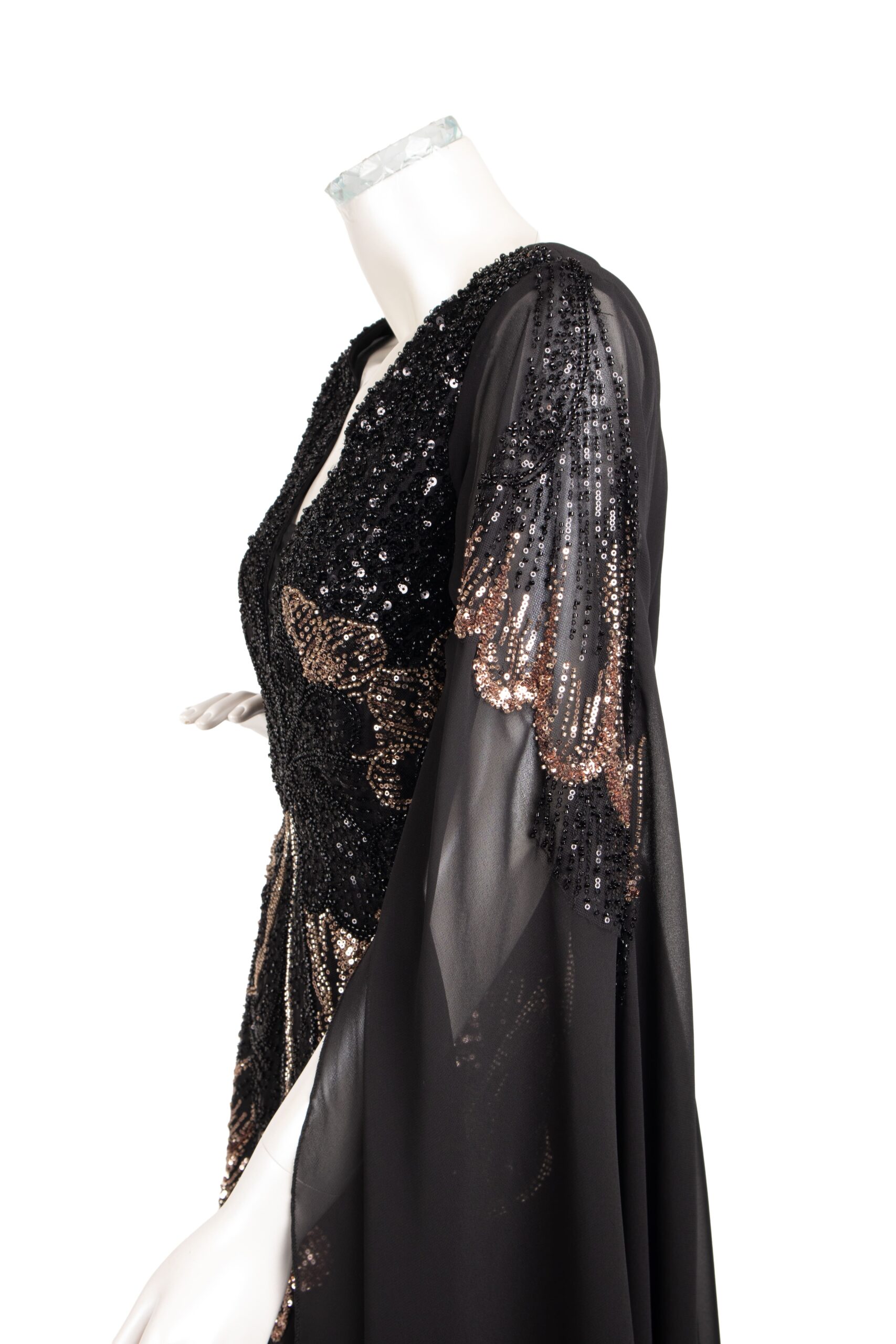 فستان سِحر بالأسود الفاخر، تطريزة فراشة ترفرف بأنوثة، وشيفون ينساب بخفة فخمة 🖤