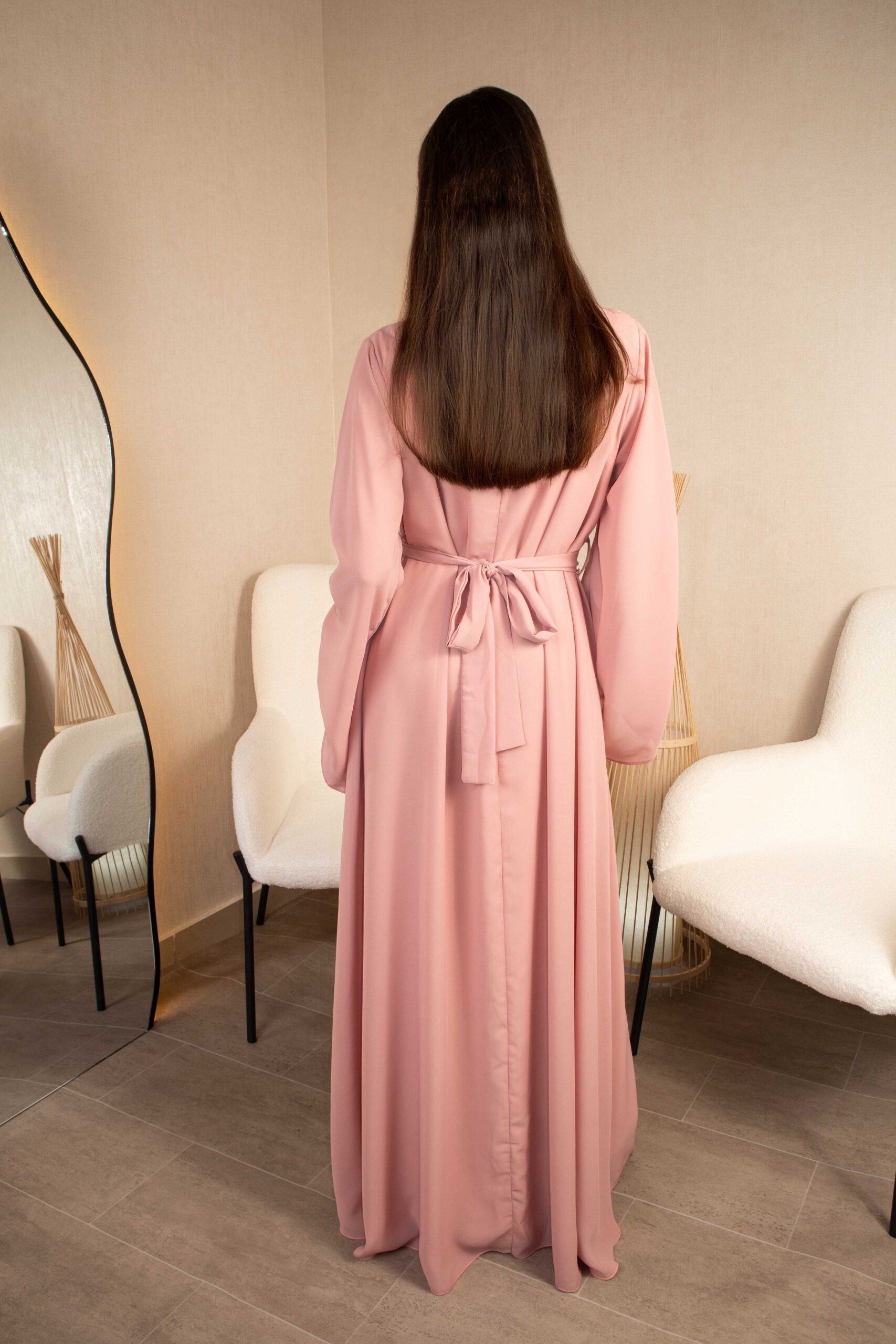 مراجعات العملاء على فستان وردي طويل (شيفون) – تصميم أنيق
