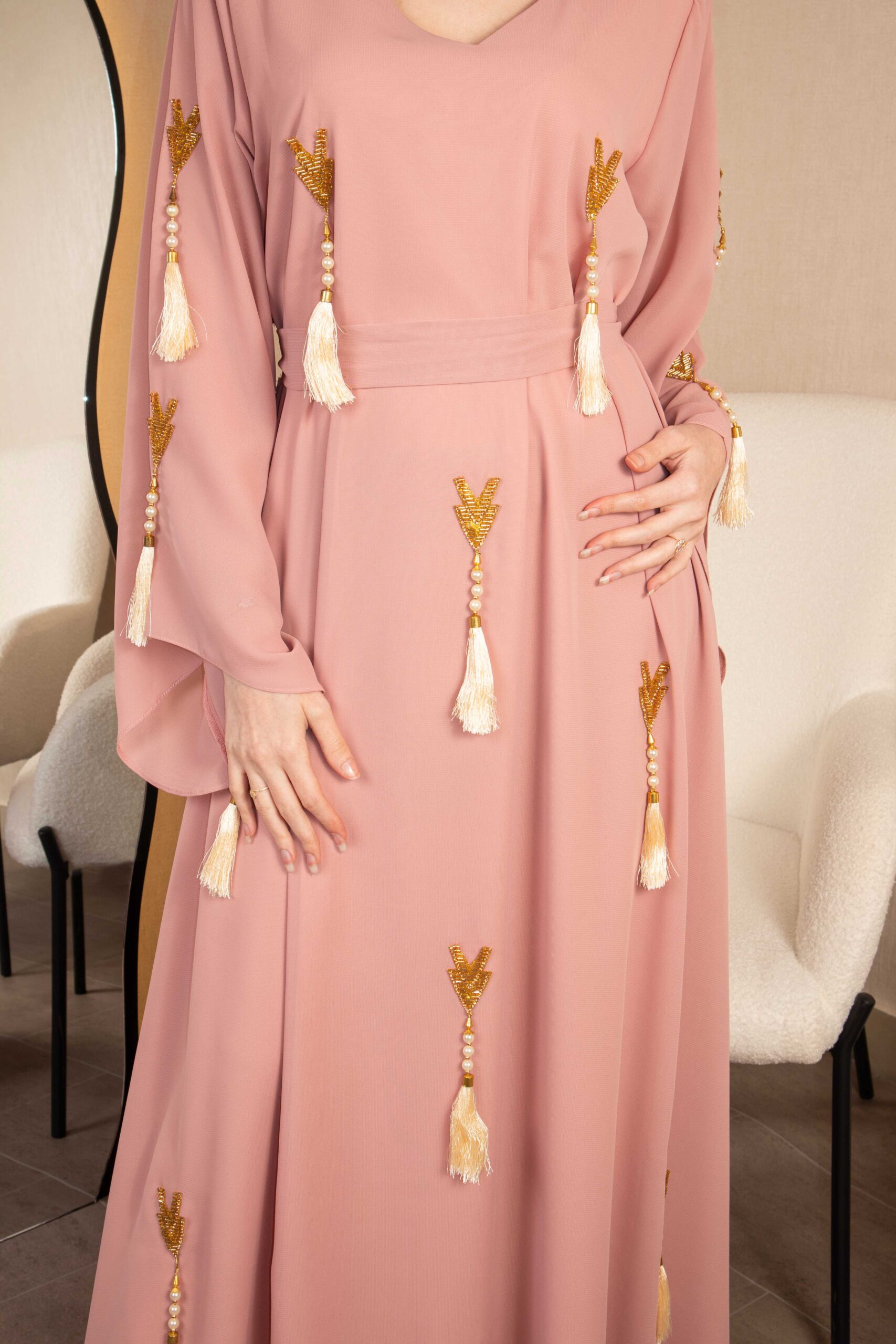 فستان نسائي أنيق من مس لورين مصنوع من قماش الشيفون الخفيف، يأتي بلون وردي بشري هادئ يمنح إحساسًا بالنعومة والرقي. يتميز بتصميم طويل وأزرار أمامية تضيف لمسة أنيقة، مناسب للمناسبات والسهرات بإطلالة أنثوية مريحة.